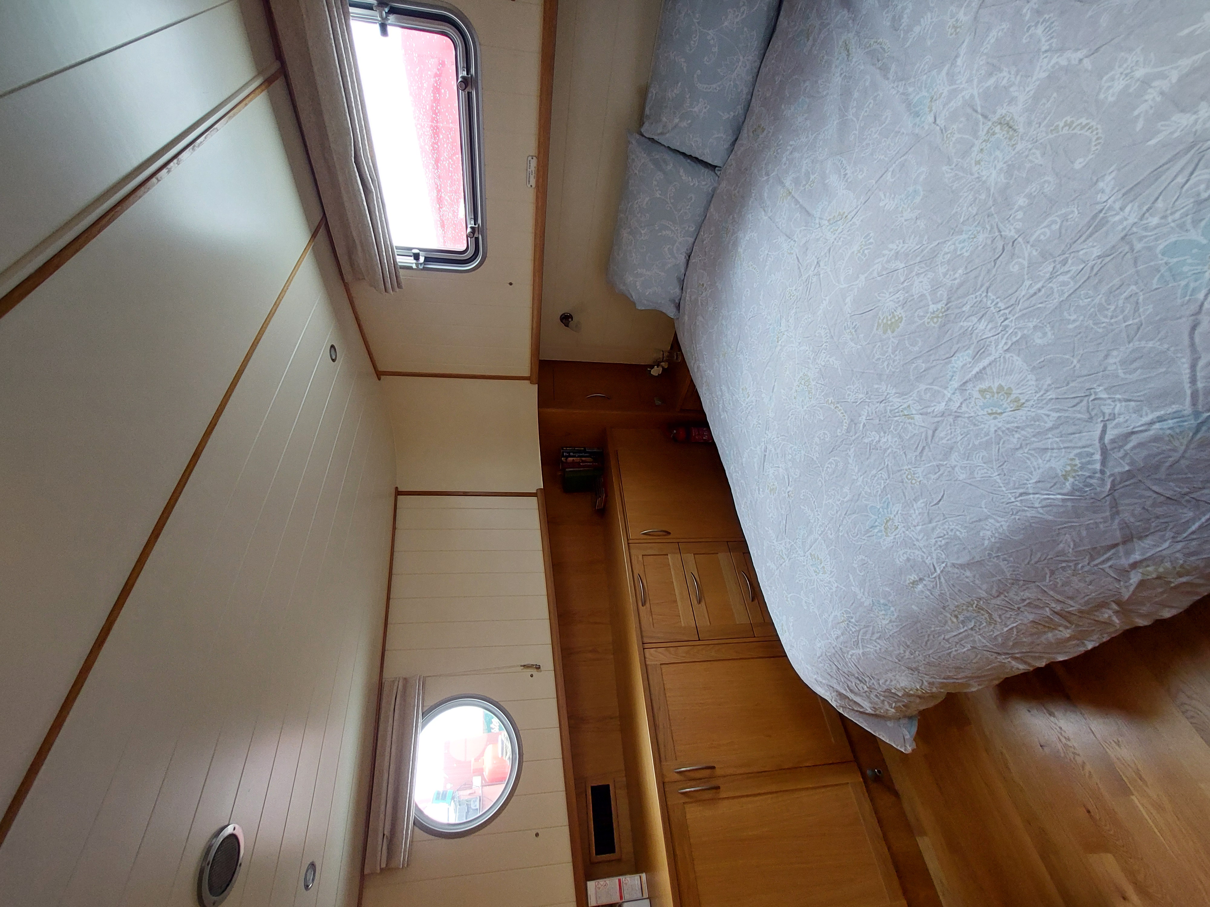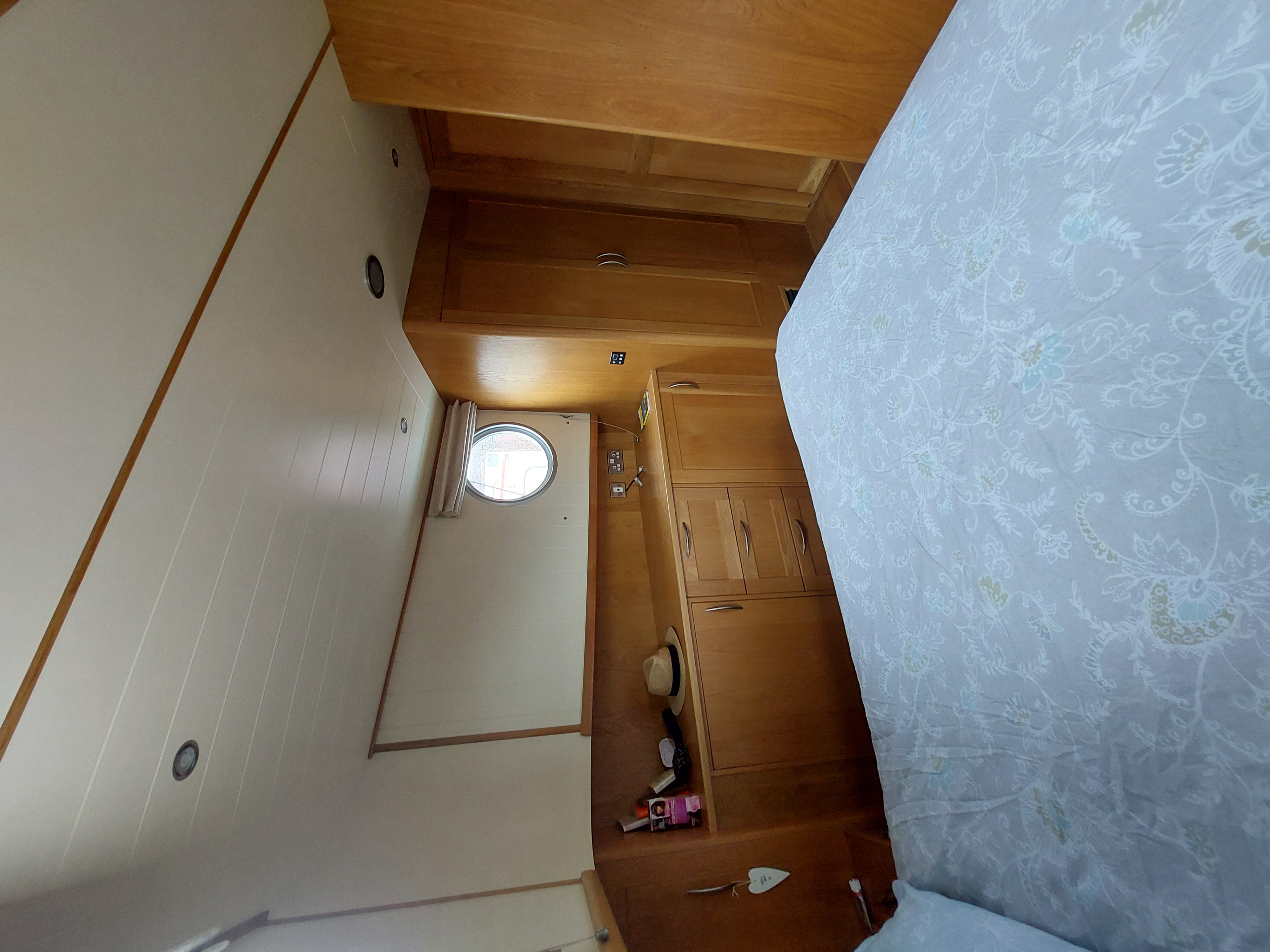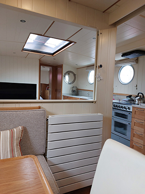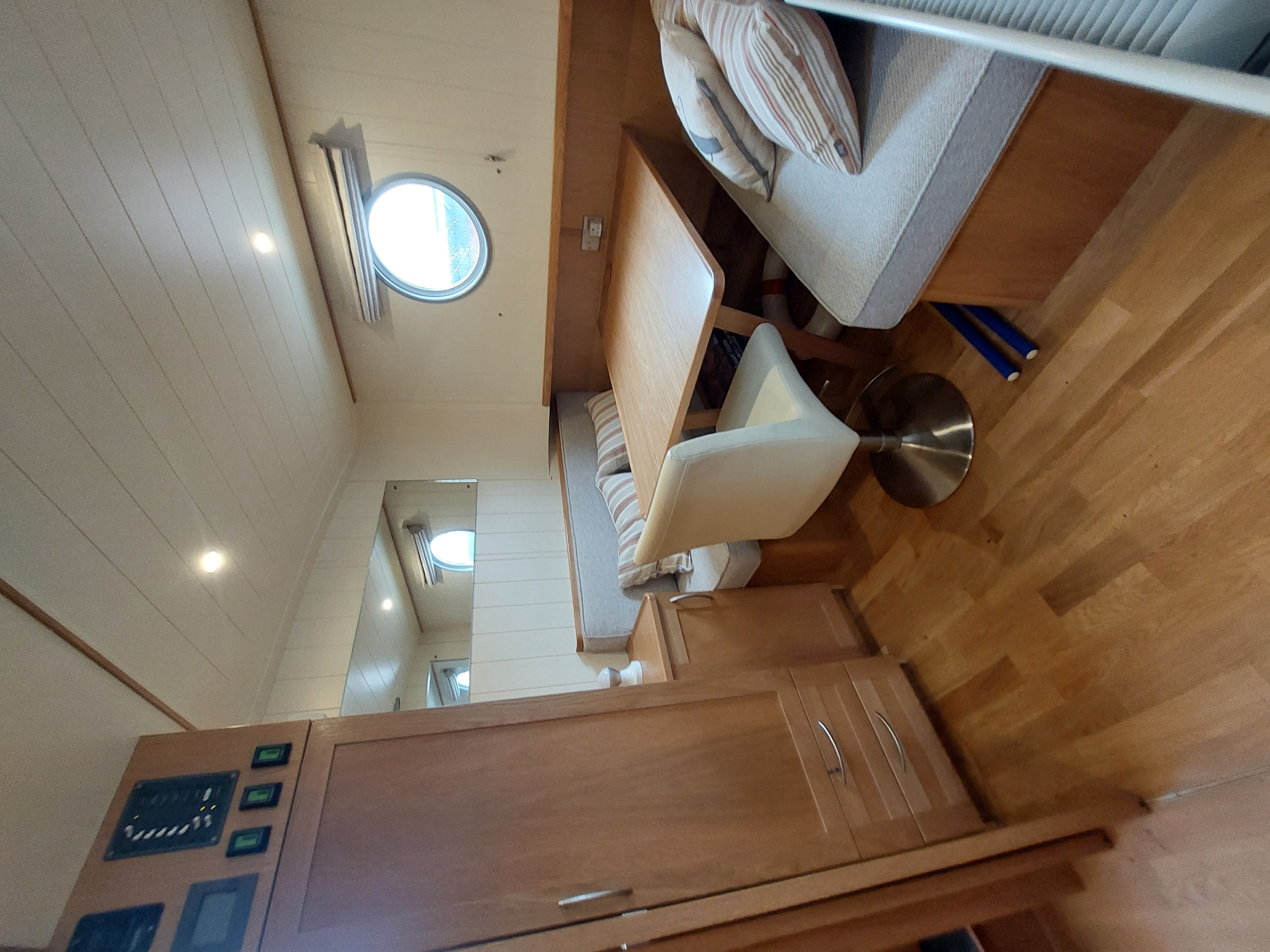 Happy Chance is fully insulated, double glazed and heated throughout. The central heating and hot water is provided by engine, immersion heater or the Kabola Oil Fired Boiler, which heats radiators in the wheelhouse, saloon, master cabin (including the heated towel rail in the ensuite shower room) and the convertible cabin. The system can be operated manually or via the Hive app. Should the WiFi disconnect, there is the option turn on the heating remotely using a text message.